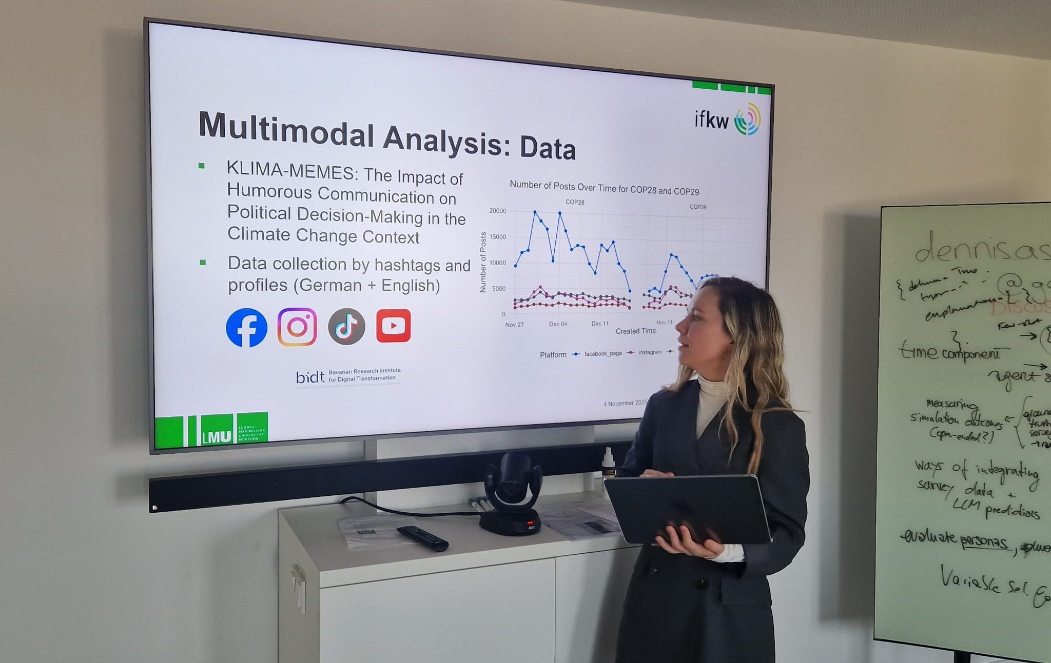 Nadja Ozornina presented her work titled „When Multimodal Meets Comparative: Analyzing Multimodal Data in Comparative Context for Computational Communication Research“ to the KLIMA-MEMES team today. Her work aims to develop a methodological approach for computational communication research, which allows for multimodal analyses in comparative contexts. This includes, for example, the combined automated analysis of image and text content in social media posts in various languages.